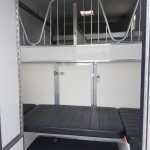 Stainless steel full length padded partition with several heights and stall widths available. 2 Horse windows and a further ventilation window. Window from cab to horse area. 2 internal lights and red travelling light. Reinforced bulkhead and sidewall. Choice of 6mm or 10mm heavy duty rubber matting over waterproof flooring, with drainage holes. Rubber matting covering the joint between ramp and the horse area. Jockey door to grooms area. Breast bar 4’6″ high with solid bulkhead below. EVA rubber protection to horse area to a height of 4′. Two tie rings and 2 haynet rings. Three opening glass windows. Two 4-way opening roof ventilators. Internal light over ramp. Options for additional extras.