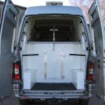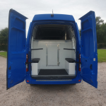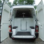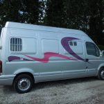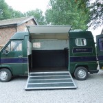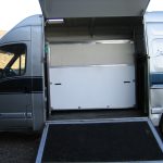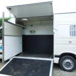 Steel with GRP roof. The walls are insulated with 2″ polystyrene foam. Internal walls lined with white faced GRP. A wide and very low ramp. Ramp is rubber lined. Two rear opening doors to grooms/luggage area. Two external tie rings.