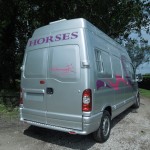 Stainless steel full length padded partition with several stall widths available. Storage for partition to the offside to make mare and foal box. Breast bar 4′ 6″ high with solid bulkhead below. Jockey door in breast bar giving access to grooms area. Heavy duty rubber over a high quality wisadeck floor, with drainage holes. EVA rubber protection to vehicle sides to a height of 4′. Two tie rings and two haynet rings. Three opening windows. Two, 4-way opening roof ventilators. Internal light over ramp.
